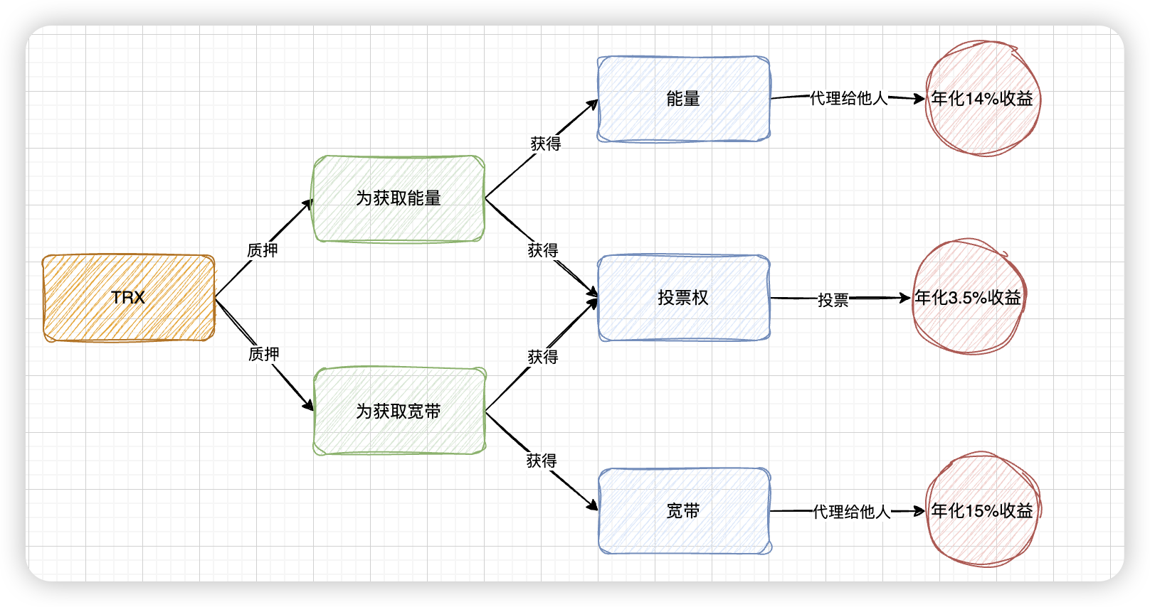 以上收益均是按日结算。除了以上收益,质押TRX后获得投票权,还可以对超级代表投票,获得投票收益,年化3.5%.
